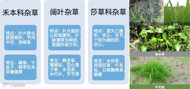 草相:稗草、千金子和异型莎草等一年生杂草为主。发生早、数量多、危害重;