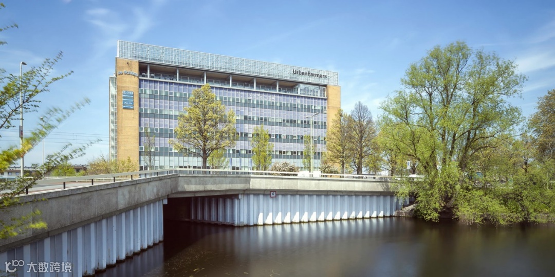 UF 002 De Schilde "温室安装在上世纪 50 年代的一栋空置办公楼的顶层,该办公楼曾属于荷兰电信巨头飞利浦公司。它位于一个废弃的接待台和六层空置办公空间的上方。温室位于屋顶的最高层,但城市农场主的活动也在 6 层,设有接待台、商店、露台和鱼类生产单元。