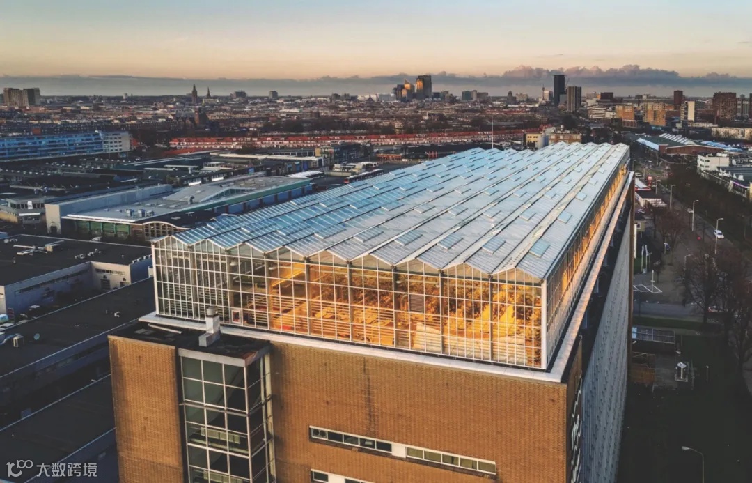 该建筑是一座现有的高大工业建筑,温室于 2015 年直接建在屋顶上,并于 2016 年开始生产。该建筑位于靠近海牙市中心的工业区。