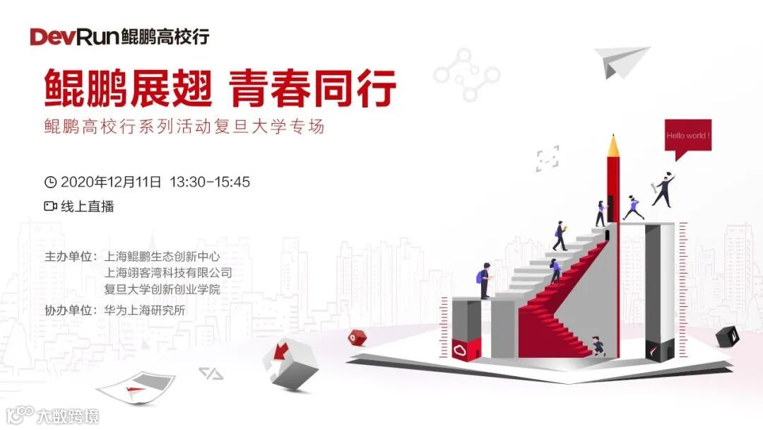2020年12月11日,“鲲鹏展翅,高校同行”系列活动-复旦大学专场将以线上直播的方式举办,本次讲坛活动将邀请华为鲲鹏计算领域的资深专家为大家介绍鲲鹏计算产业,华为鲲鹏计算大数据解决方案及开源实践,华为鲲鹏加速库技术及应用以及“遇见成长”职业生涯讲座等众多精彩内容。