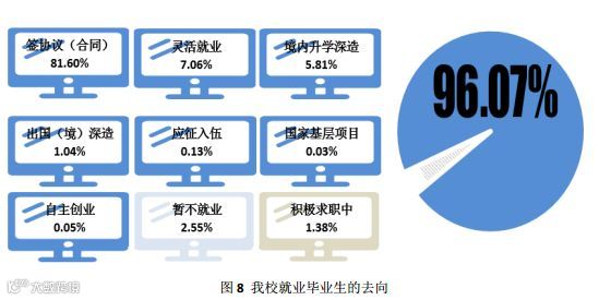其中,研究生就业率 98.50%,本科生就业率为 94.33%,专科生就业率为 99.32%。