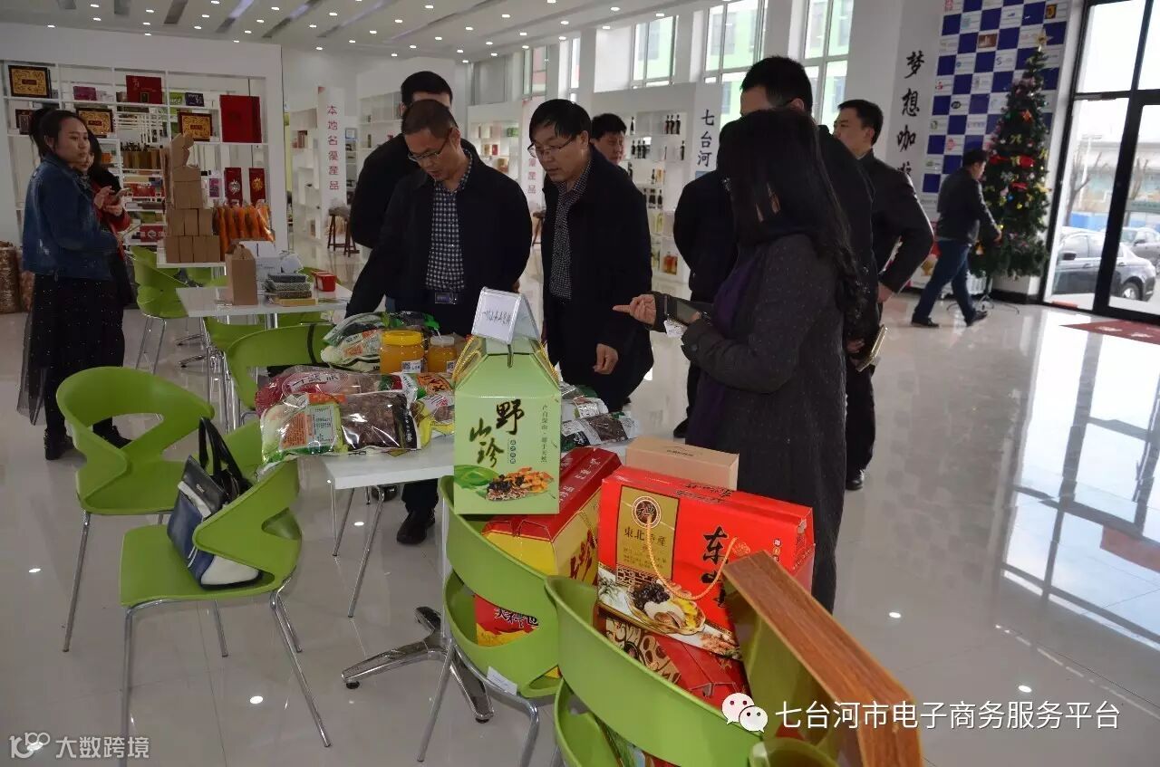2017年3月30日14:30,南方客商在七台河市人民政府秘书长陈志以及七台河市农业畜牧兽医局局长、党委书记宋诗利等人的陪同下参加了七台河市电子商务产业园本地特产推介会。
