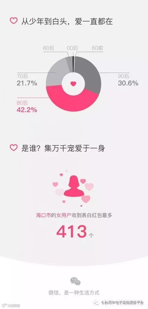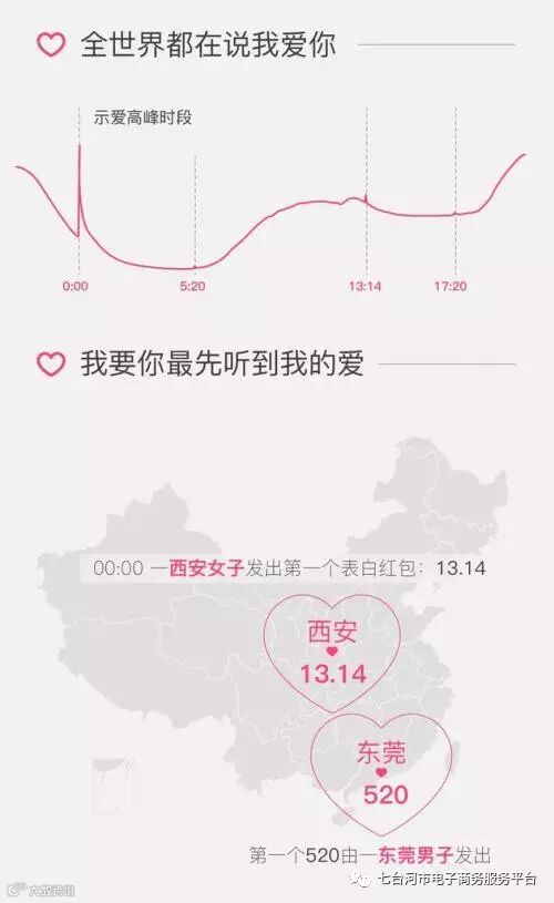 发送表白红包最多的前三个城市为深圳、北京、上海,海口市的一位女性收到了413个表白红包,成为了情人节的“最大赢家”。