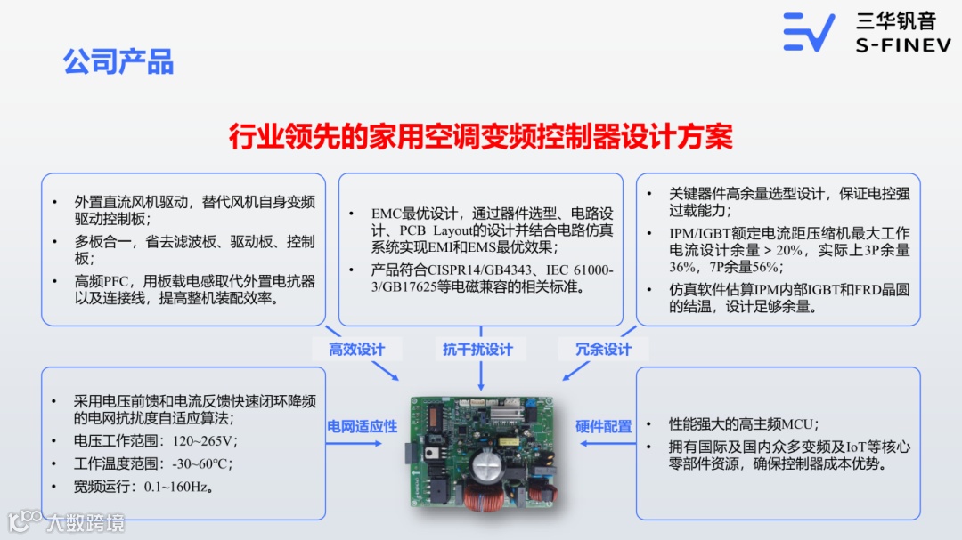 广东三华钒音科技有限公司是一家全栈智能驱动及物联网方案服务商,专注于为家电控制系统、工业产品控制系统、物联网智能控制系统等领域提供研发、生产及销售服务的高科技公司。凭借20多年的变频驱动算法积累,已经成为智能家居和工业物联网领域的佼佼者。公司核心团队不仅拥有主流变频驱动底层算法的设计能力,还与瑞萨、华大、凌欧等多家知名企业建立了长期战略合作关系,确保了产品开发思维和理念在行业中处于先进水平。