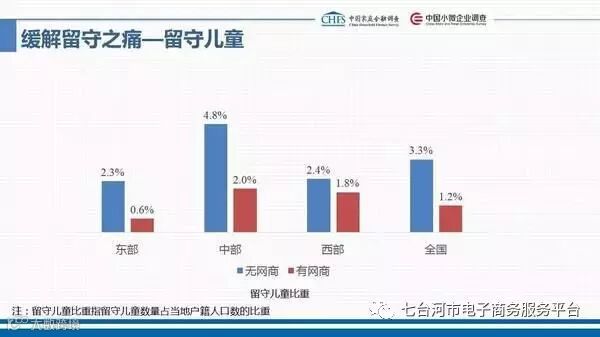 外出人口的减少,相应的也就减少了留守老人与留守儿童的人数。明显可以看出有网商村庄的留守老人与儿童少于无网商村庄的留守老人与儿童。