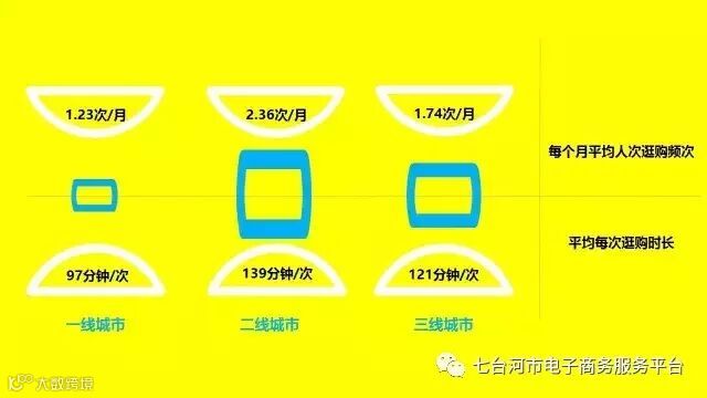 从时间维度来看,二三线城市无论在月均逛购频次还是每次逛购时长上,都比一线城市存在更大的业务空间。所以,二三线城市将成为线下实体商业的新增长点。并且,由于二三线需要的服务会更多,租金水平相对较低,其消费群体也就相对更多。