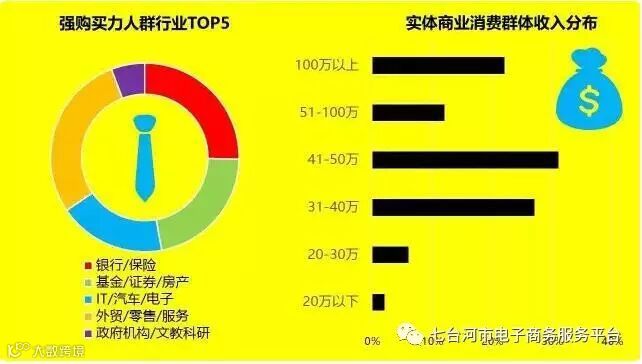 消费力最强群体产生于银行 / 保险、IT / 汽车 / 电子、基金 / 证券 / 房产、外贸 / 零售 / 服务、 政府机构 / 文教科研;年收入 41 万 - 50 万的消费者购买力最强,其次是 100 万以上收入者及 31 万 - 40 万的群体。