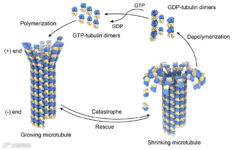 微管蛋白由两种类型的微管蛋白亚基,即α-tubulin蛋白和β-tubulin蛋白组成。微管蛋白在有丝分裂、细胞信号转导和细胞器运输等多种细胞功能中发挥着重要作用,是肿瘤治疗的重要靶点。