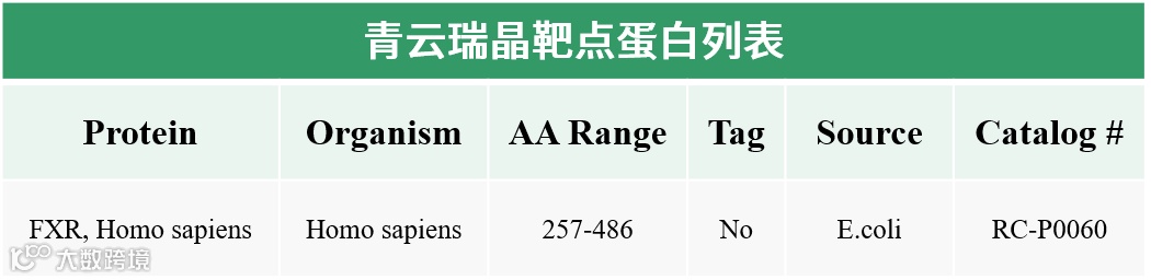青云瑞晶完成了FXR和小分子共晶的结构解析,针对该靶点积累了丰富的蛋白表达纯化和抑制剂的共晶结构解析的经验。