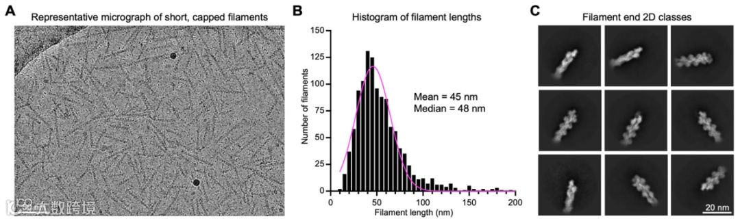 图1. 肌动蛋白冷冻电镜照片以及二维分类结果
