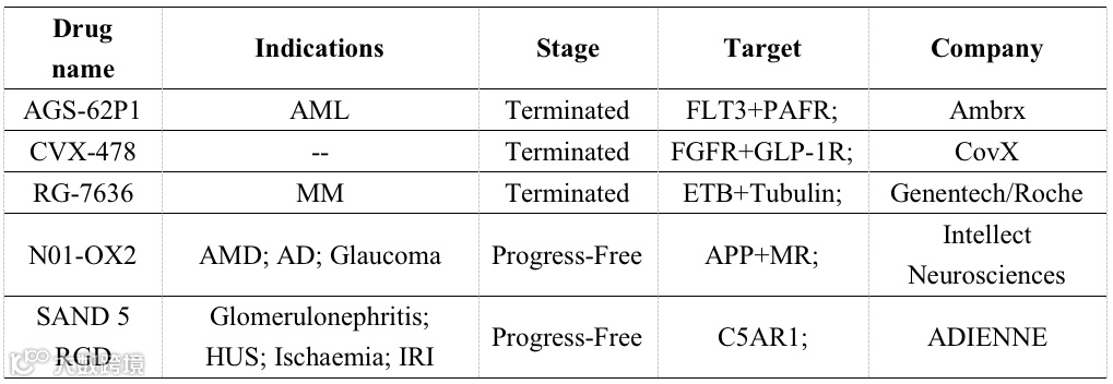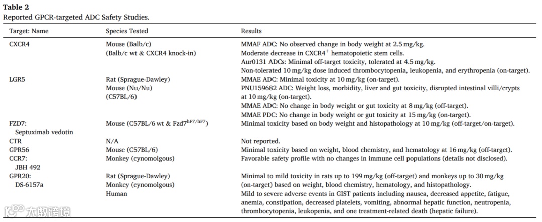 除上述处于临床前/临床试验的ADC外,还有多款靶向GPCR的ADC终止研究或出于无进展状态(表2)[33, 34]。