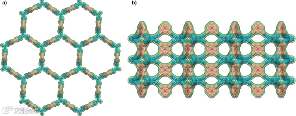 图4. 沿(a) c轴和(b) a或b轴观察到的JUC-640-M扩展结构。