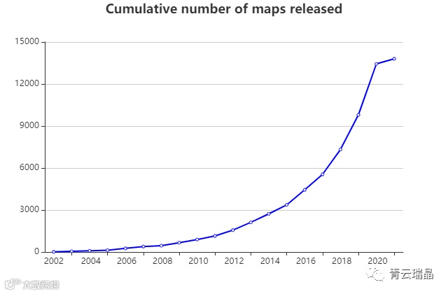 图 1 冷冻电子显微镜解析的生物大分子三维结构数目的变化趋势