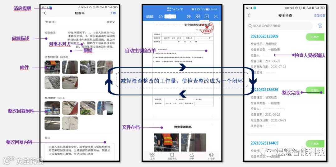 系统做了数据离线实时推送机制,无需打开APP,便能收到检查单的推送提醒,避免遗漏信息,做到快速响应;及时整改;保障安全。