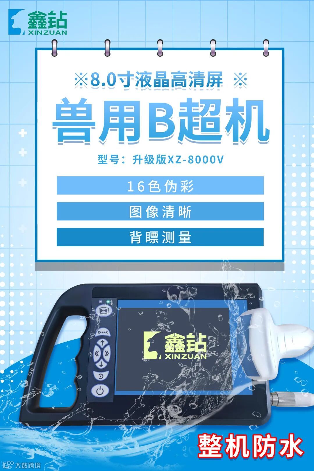 鑫钻8000V B超全新再升级,8寸超大屏,整机全套防水,可搭配多种探头检测不同动物,增能不增价!欢迎来电垂询!