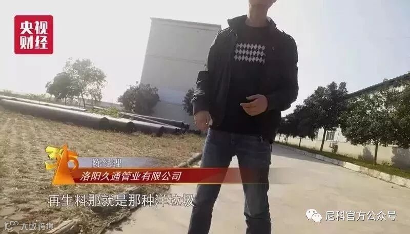 记者发现,市场上有一种水管,比“国家标准版”的产品价格便宜三分之一,是因为生产过程中加入了便宜的再生料。有业内人士表示,好多再生料是用洋垃圾做的。