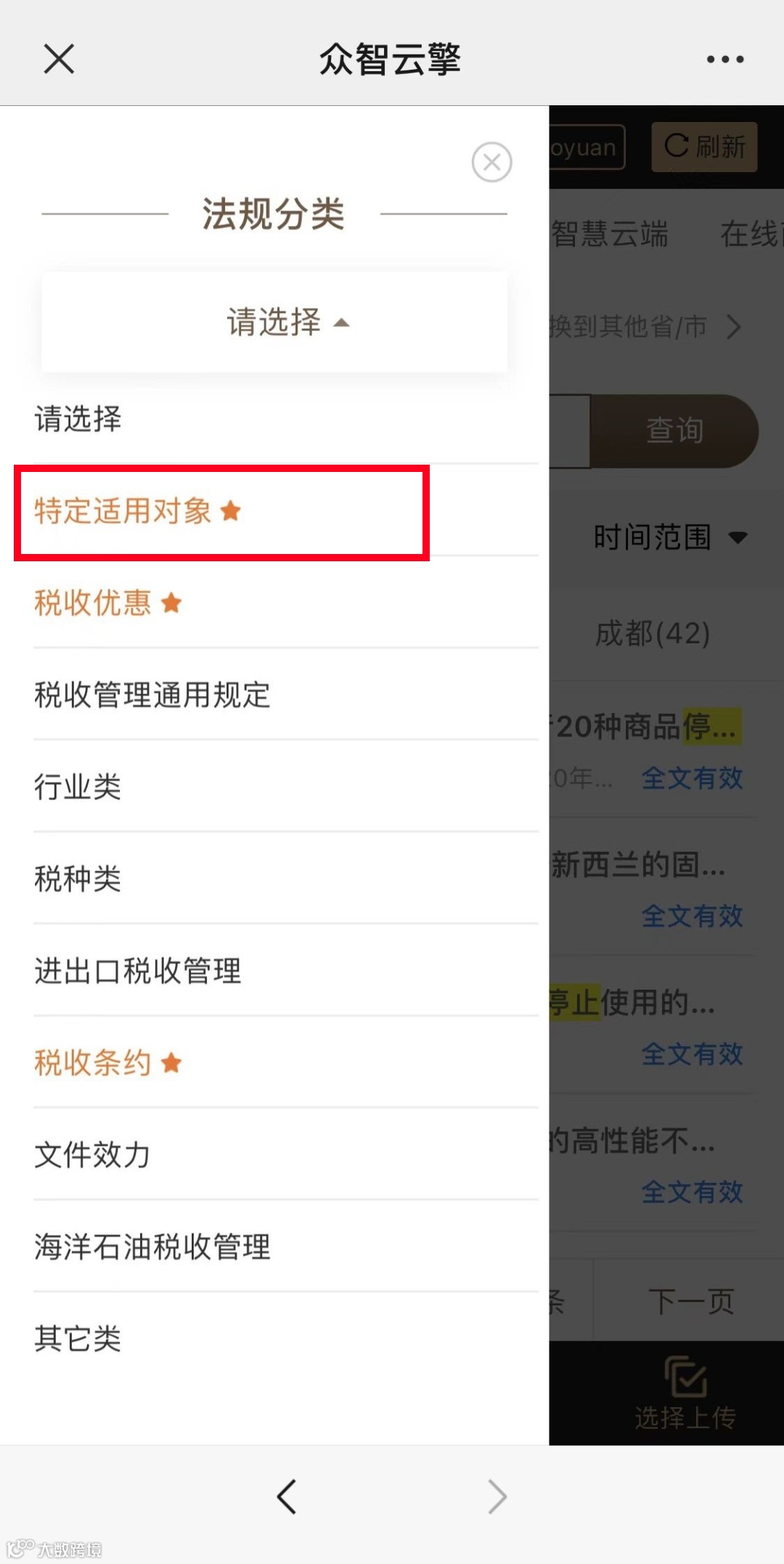 以上问题,众智云擎都能“一键搞定”。系统根据法规使用频率、用户使用习惯,将文件分为10个大类、583个小类,实现精准、快速查询,独创“特定适用对象类”,“税收优惠”、“税收条约”“通用规定”等分类。
