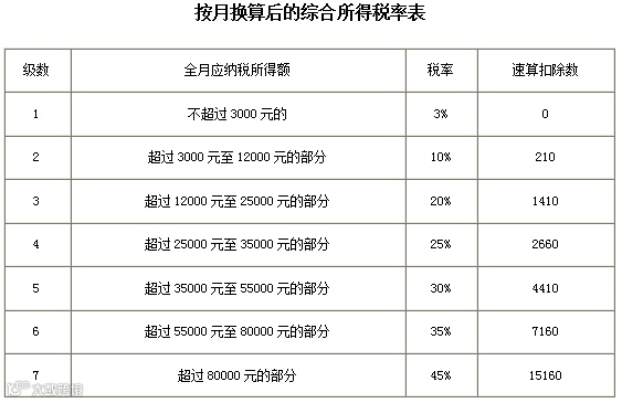 1.个人所得税税率表