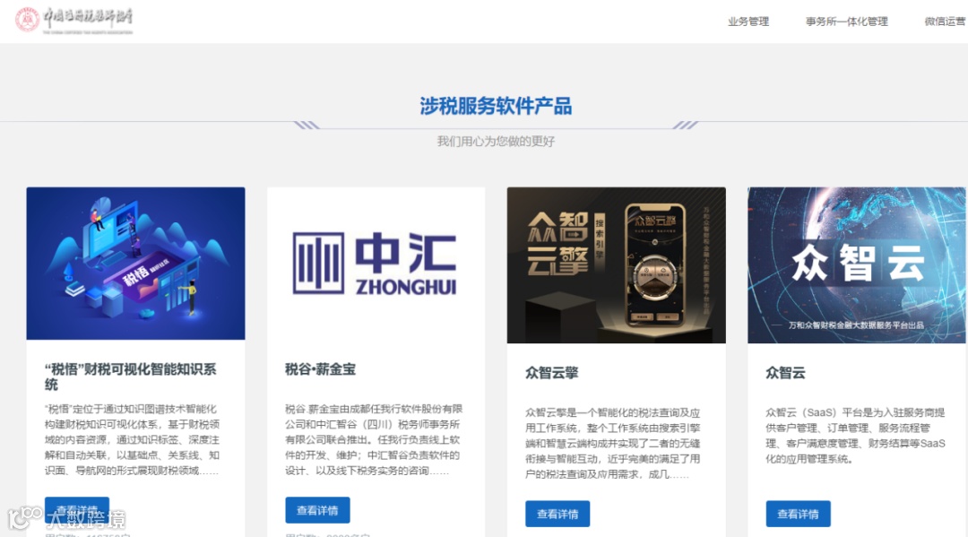 并且众智云擎还被中国注册税务师协会官网收录,位列涉税服务产品推荐首页首排。