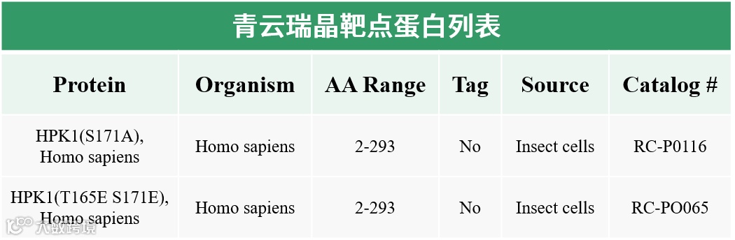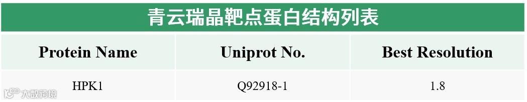 青云瑞晶完成了HPK1突变体和小分子共晶的结构解析,针对该靶点积累了丰富的蛋白表达纯化和抑制剂的共晶结构解析的经验。