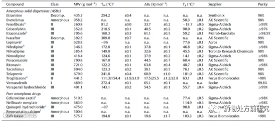 Wyttenbach, Nicole, and Martin Kuentz. "Glass-forming ability of compounds in marketed amorphous drug products." European Journal of Pharmaceutics and Biopharmaceutics 112 (2017): 204-208.