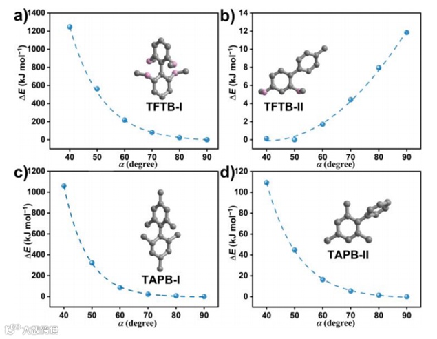 从得到的两种COF异构体的晶体结构来看,TFTB和TAPB在相邻苯环之间的可变二面角方面都表现出灵活的构型。这就导致了现在的同分异构体。