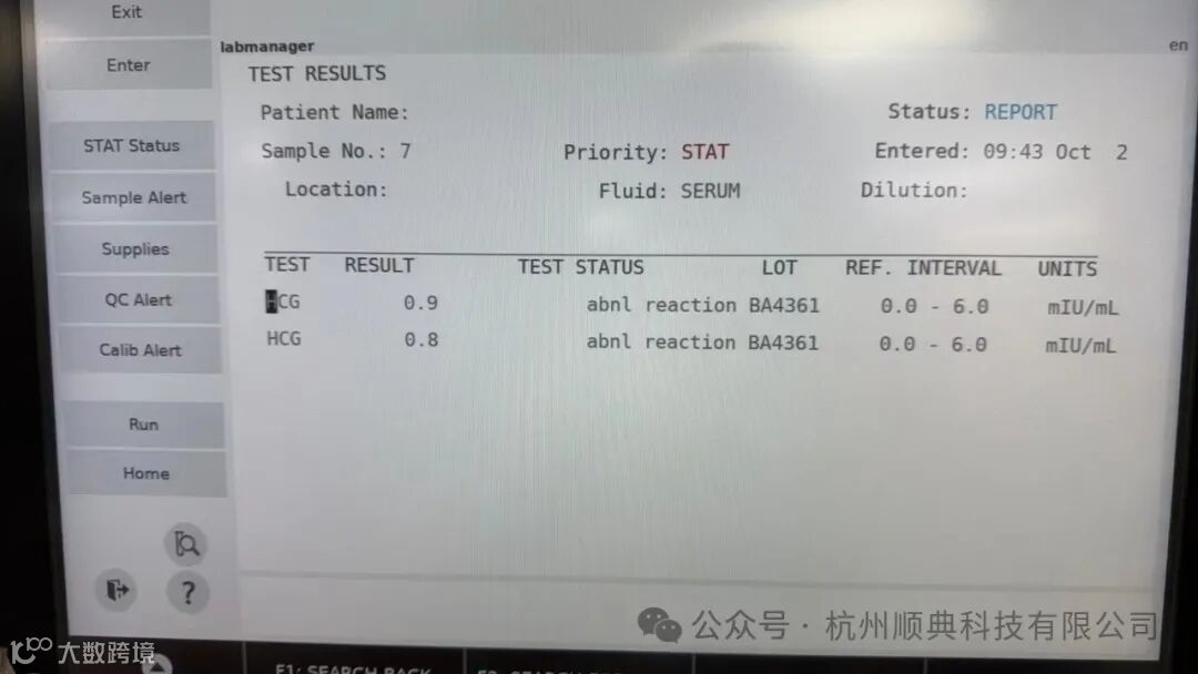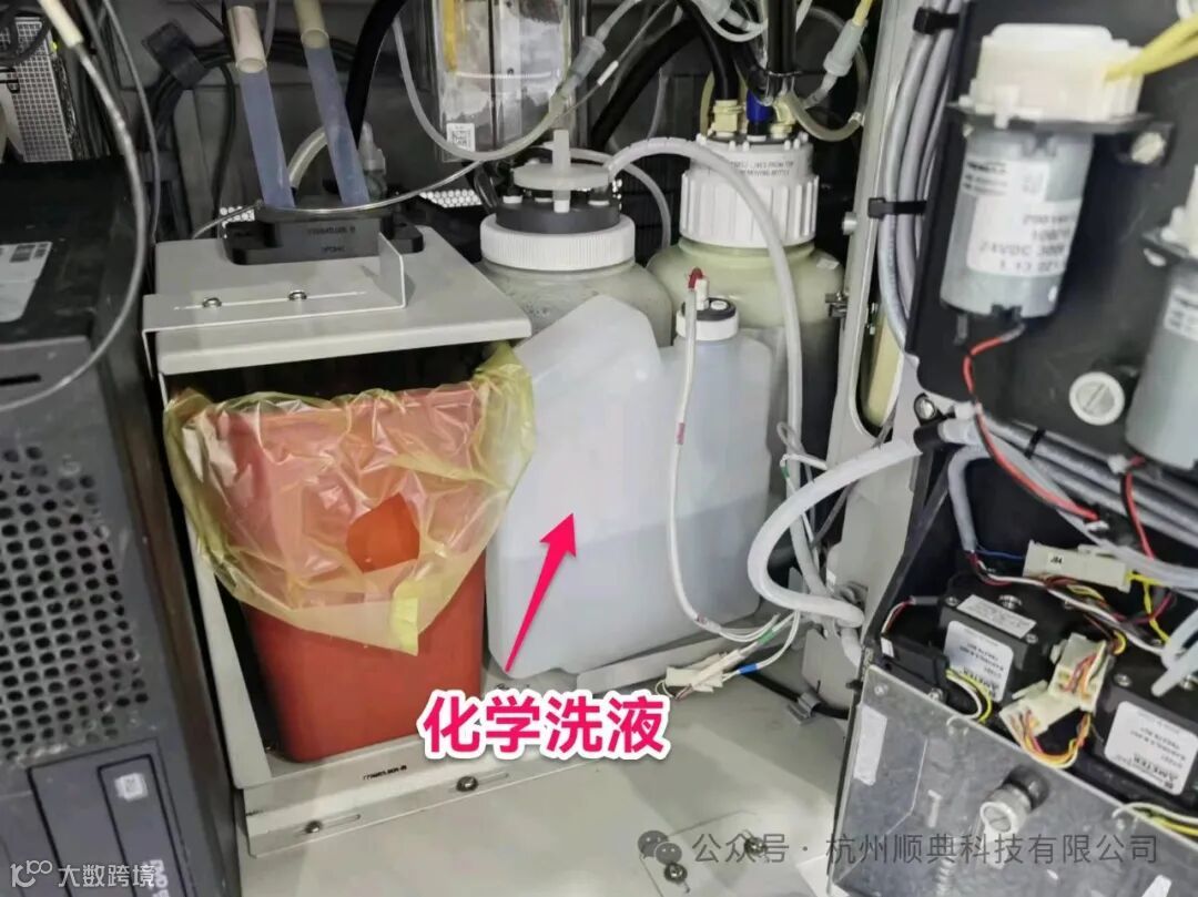案例二:HCG结果LIS端结果提示*14,对应仪器端结果提示abnl reaction(异常反应),检查发现化学洗液用空,仪器没有报警。