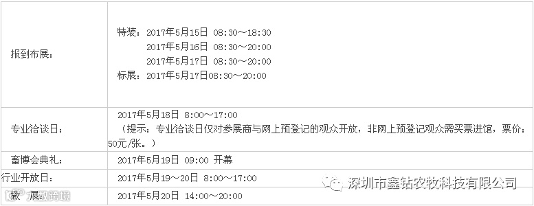 第十五届中国畜牧业博览会将于2017年5月18-20日在青岛国际博览中心举办。深圳鑫钻品牌整体形象战略升级,展现全国畜牧业博览会,届时欢迎新老顾客朋友前来交流指导!鑫钻展位:S4馆 SP40-41