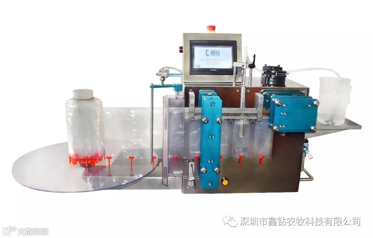 ▲ 本机为专用机,可为垾好嘴子的袋子实现定量灌装、自动贴标、封口、切断。主要用于畜牧行业实现动物精液自动分装。本机采用进口PLC、触摸屏、打印机、精密蠕动泵,可外接条码枪扫描录入动物信息,通过标签轻松区分品种,每分钟可灌装14袋。