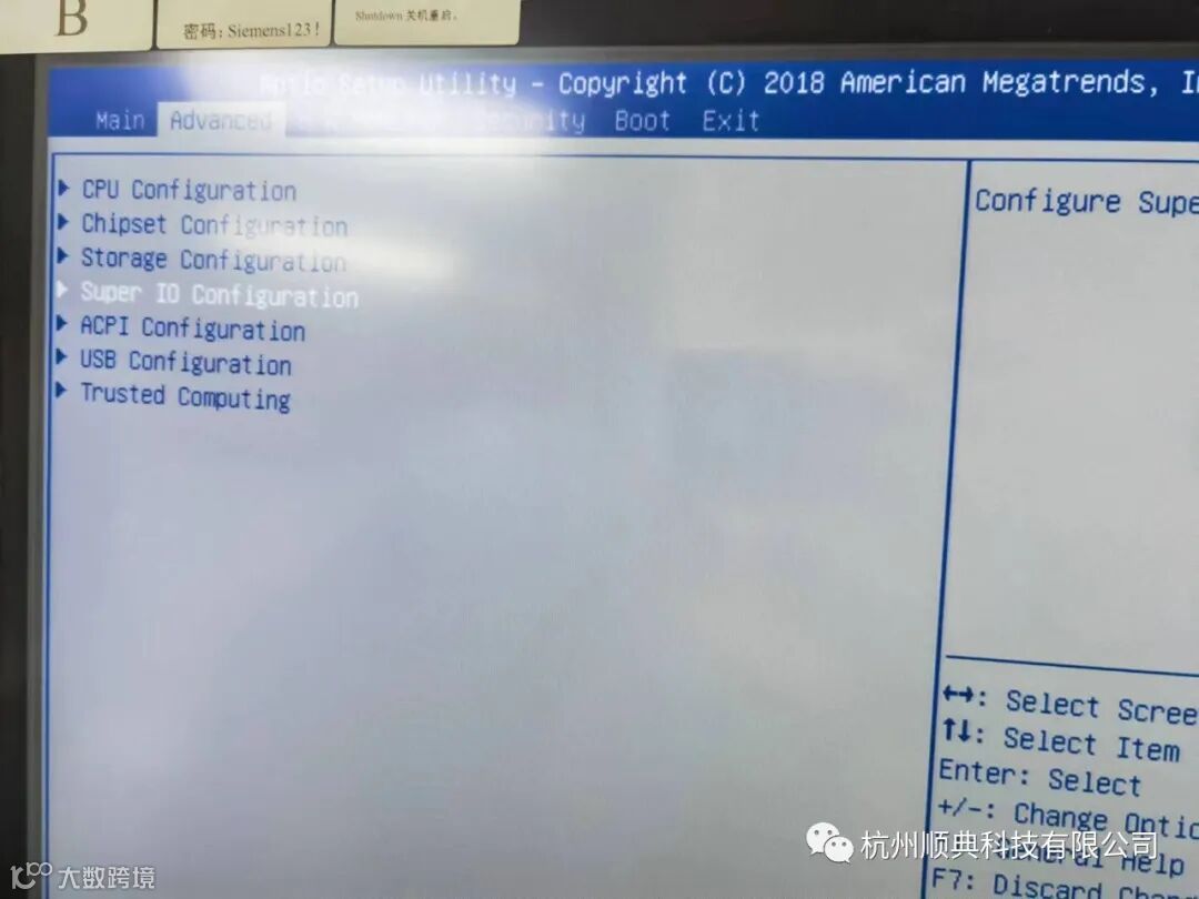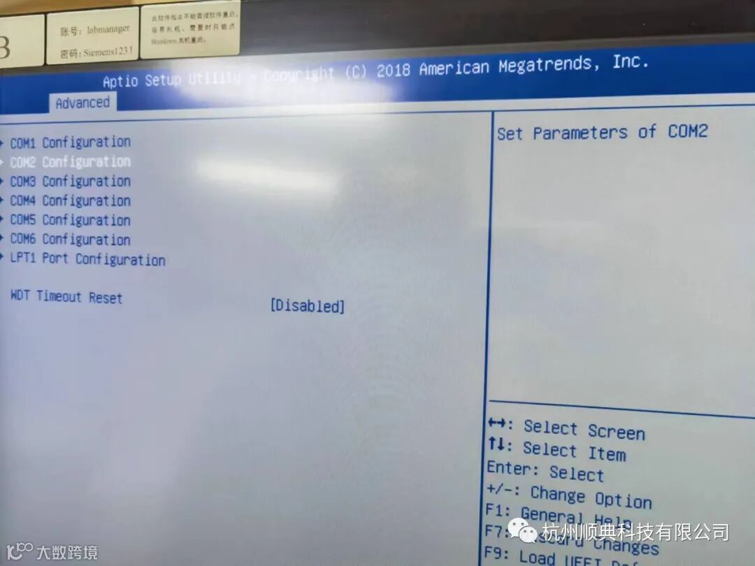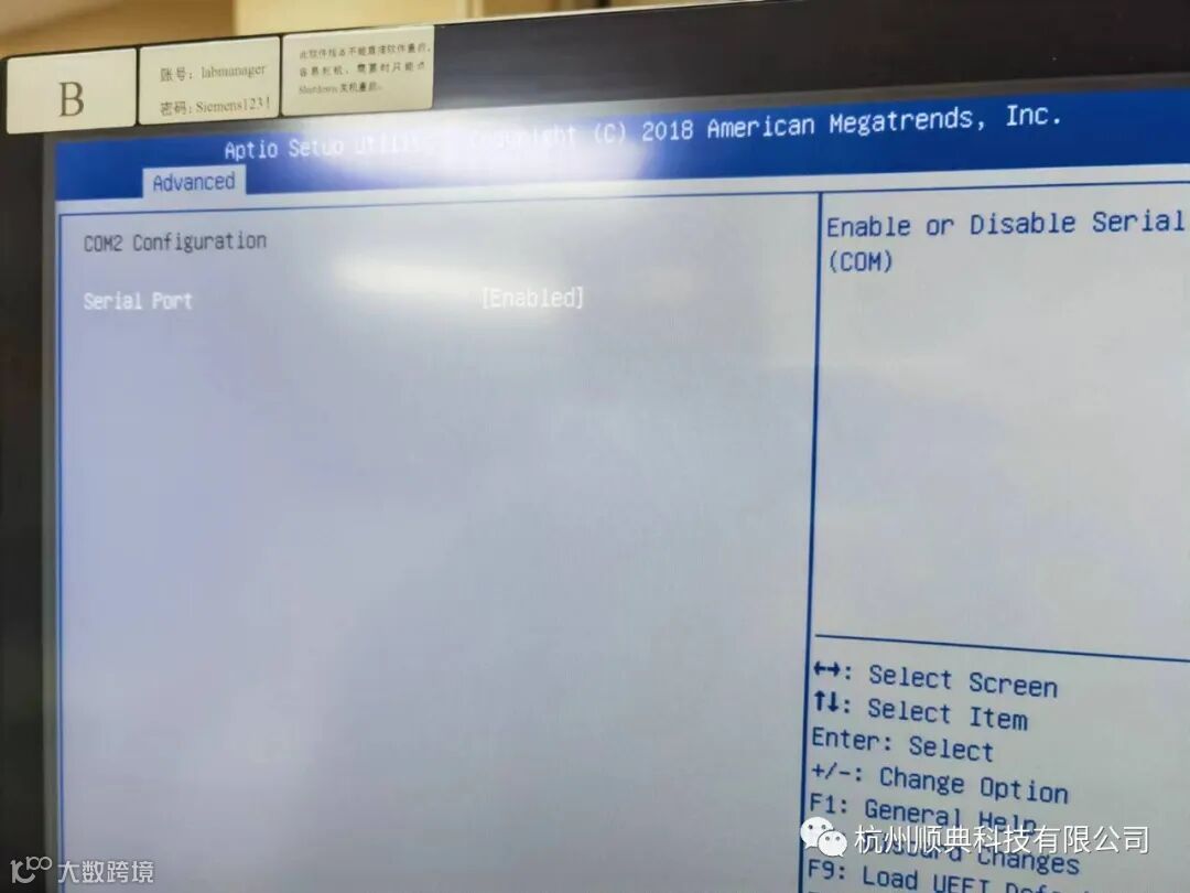 5、开机进软件,如果报通信错误,则检查COM2的通信是否打开。步骤:关机,重新开机时按住Delete键——Advanced——Super IO configuration——COM2 coffiguration——将Disable 切换成Enable——退出。