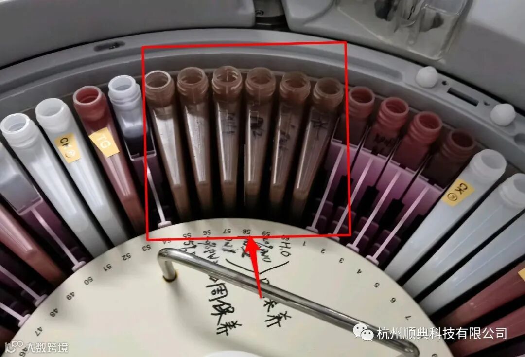 五、针排废管路清洁。(用杯子取200ML高乐士(原倍洗液),用30ML左右的注射器,往每个清洗槽下水口处打1-2管高乐士。生化的排废管路很容易滋生微生物,导致变黑变堵,如果每个月往清洗槽里注入原倍洗液,应该能较好的保持排废管路的畅通)