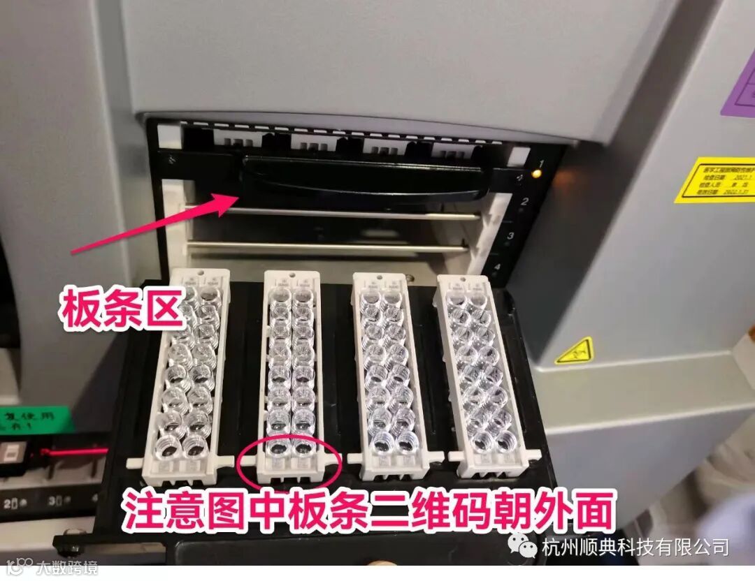 仪器正常Ready状态正常装载,直接推进去即可。(注意板条装载的时候二维码朝向,不要拿底部防止弄脏,推试剂和样本的时候需要小心,因为挡板比较矮,很容易撞到样本管或者试剂瓶,保持水平)