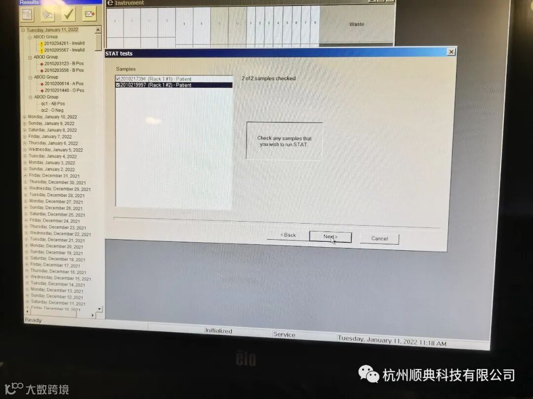确认耗材试剂都OK以后,点击左上角第二行第四个小金人运行标本-选择标本类型-选中需要做的标本-选择急诊的标本(没有可以不选择)-Begin test.