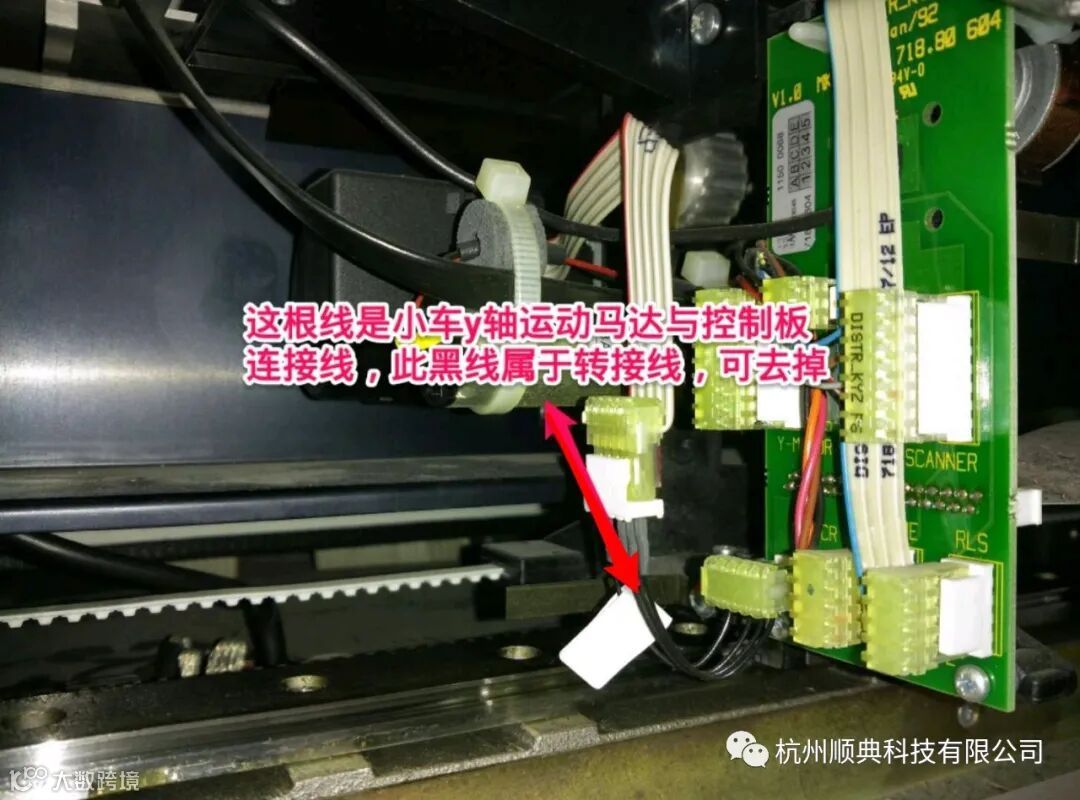 杭州顺典科技有限公司小车Y轴马达有一根延长线,这根线装机时大部分工程师会去掉,有的仪器没有去。当发生小车Y轴报警时,先检查一下这根线在不在,在的话跳过延长线直接接,把延长线去掉。不在的话检查下附近线路有没有扯到,稍微用手整理一下。