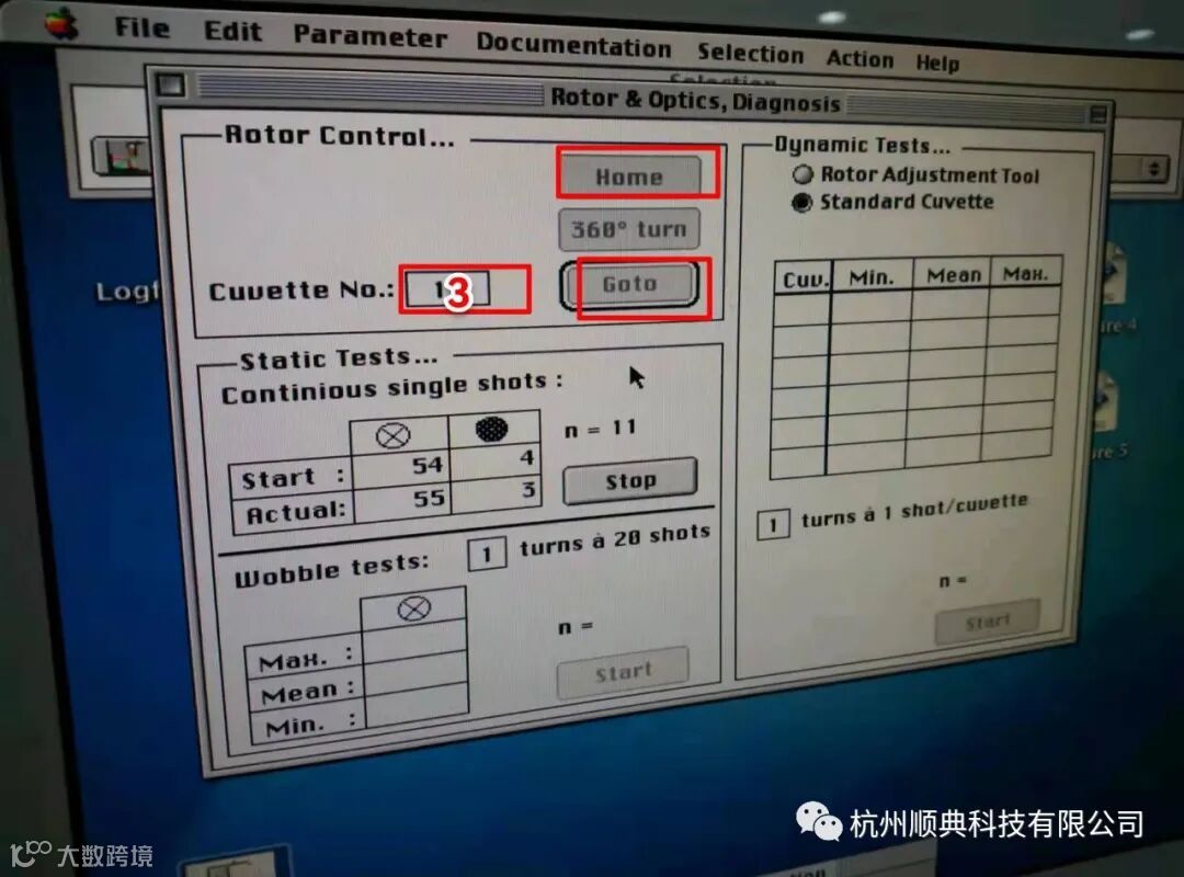 二、进入Rotor的诊断界面:将光路校准块放在3号位置,运行Home,让rotor走到3号位,看校准块是否在光路镜头中间(如不在,再回到第一步,预估步数,进行调整后,再重复步骤二看位置是否调整到位)。