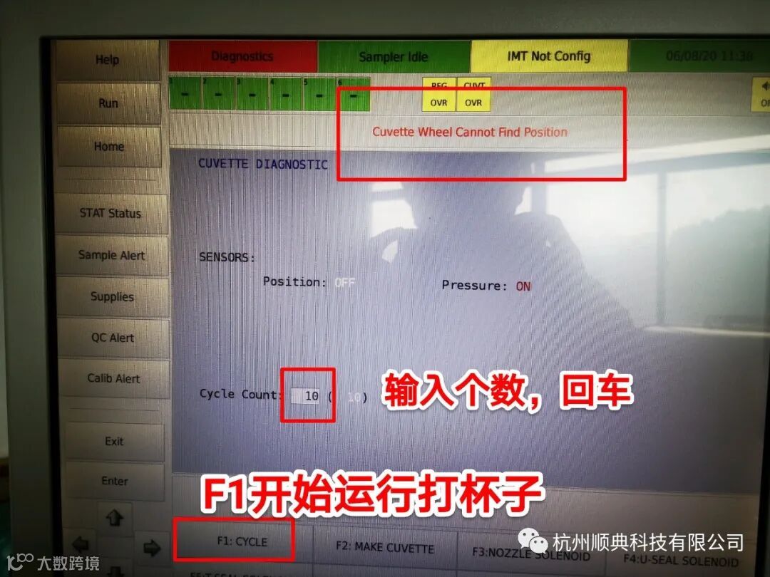 杭州顺典科技有限公司如果仪器报警Cuvette Wheel Cannot Find Position,先检查比色杯垃圾桶是不是满了,导致垃圾桶正上方的齿轮杯胶带卡住了。