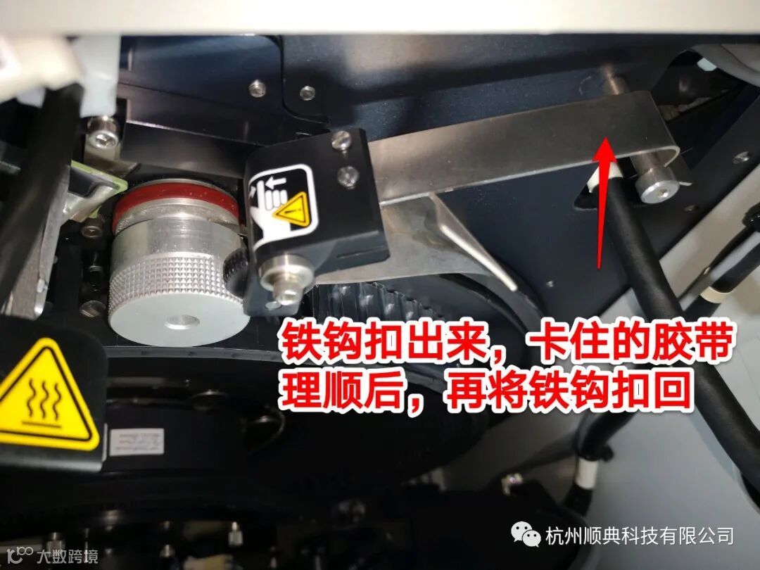 如果遇到卡的太紧,胶带理不顺,可以将压住胶带的齿轮松开,等理顺后再扣回。