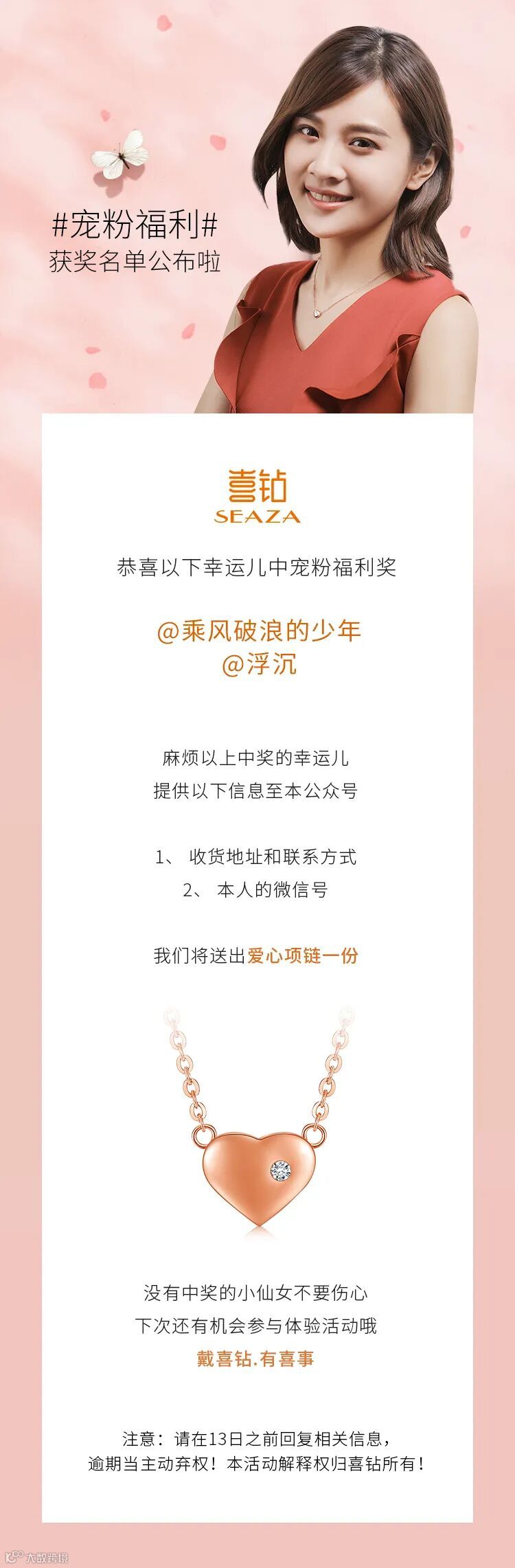 宠粉福利中奖名单公布,久等了