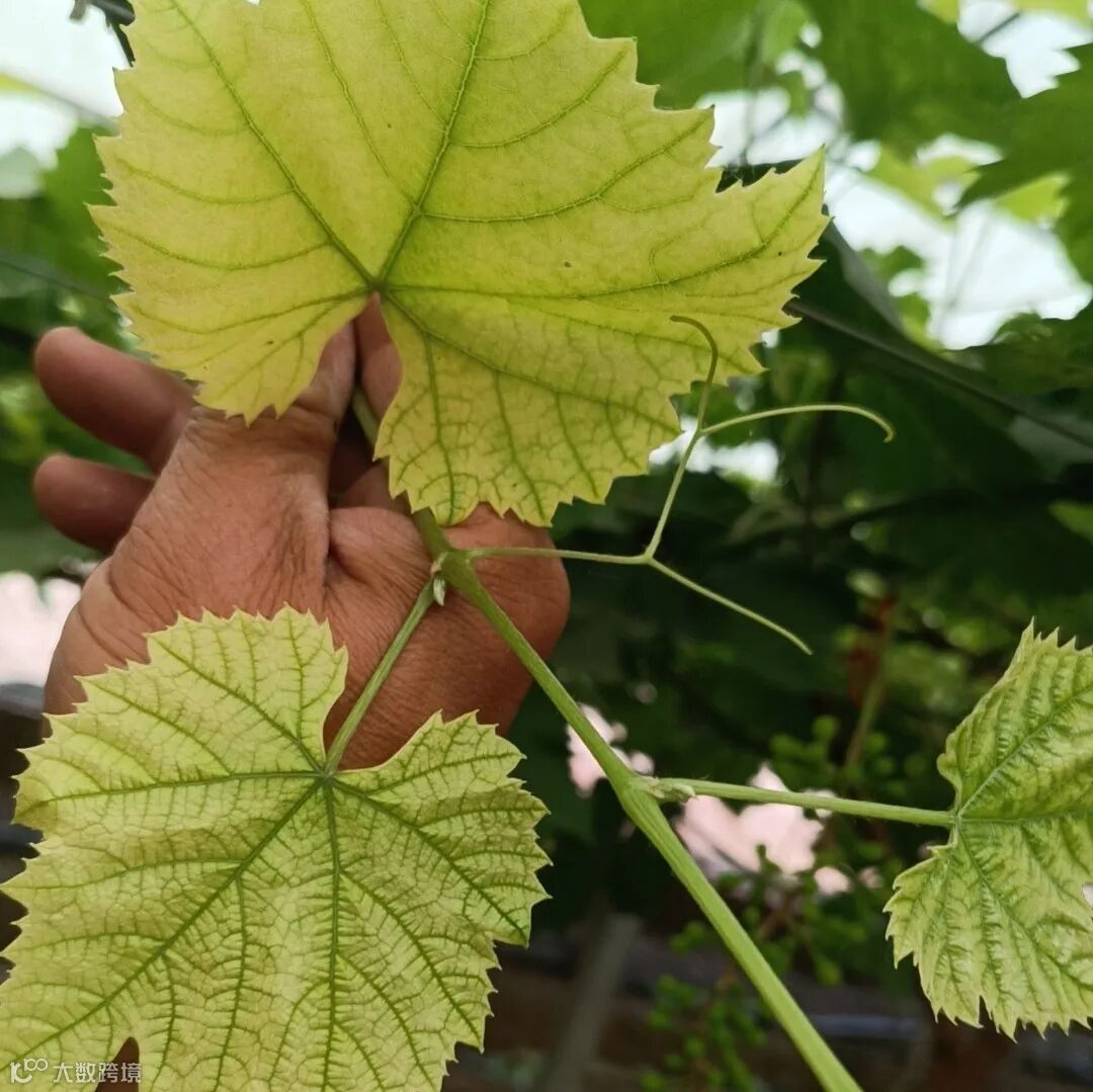 葡萄种植户老王今年有点犯愁,去年种植的阳光玫瑰那是赚的盆满钵满的,然后为了今年更好的收成,下狠心又加了不少“营养”,但是今年果品开始下降了,问题集中发生在新梢叶片上。