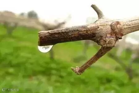 春天当葡萄根系分布土层的地温达7℃~10℃时,葡萄根系开始活动,从土壤中吸收水分与无机盐类物质,同时根部和多年生枝蔓中贮藏的有机营养也变为可给态,由根系和老蔓向上传导,由于枝蔓上的导管粗大,根压又大,树液上升速度很快,此时尚未萌芽展叶,地上部如有机械伤口,便会引起树液外流,成为伤流。