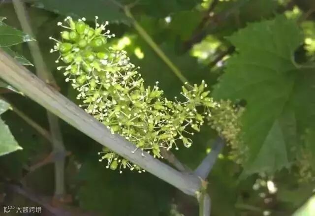 从坐果到果粒由青变白是葡萄第一次膨大期。根据品种的不同需要30~60天,果实在此时期生长迅速,同时枝条下部开始发育,腋芽中形成冬芽。