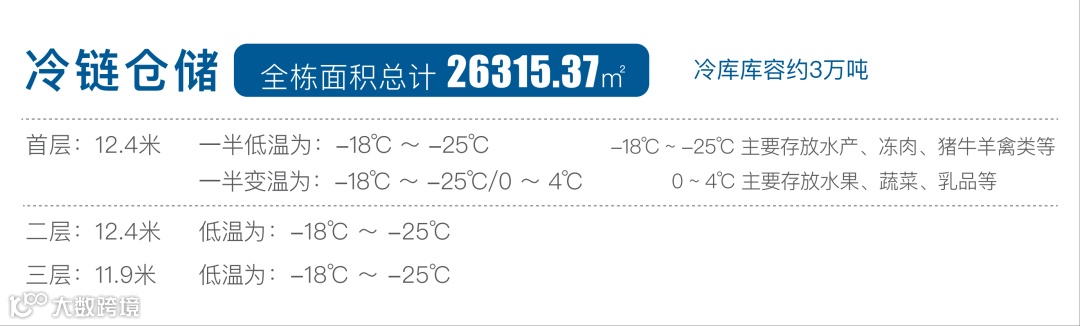园区冷库库容3万吨,可满足大批量冷链货物的集中存储需求。