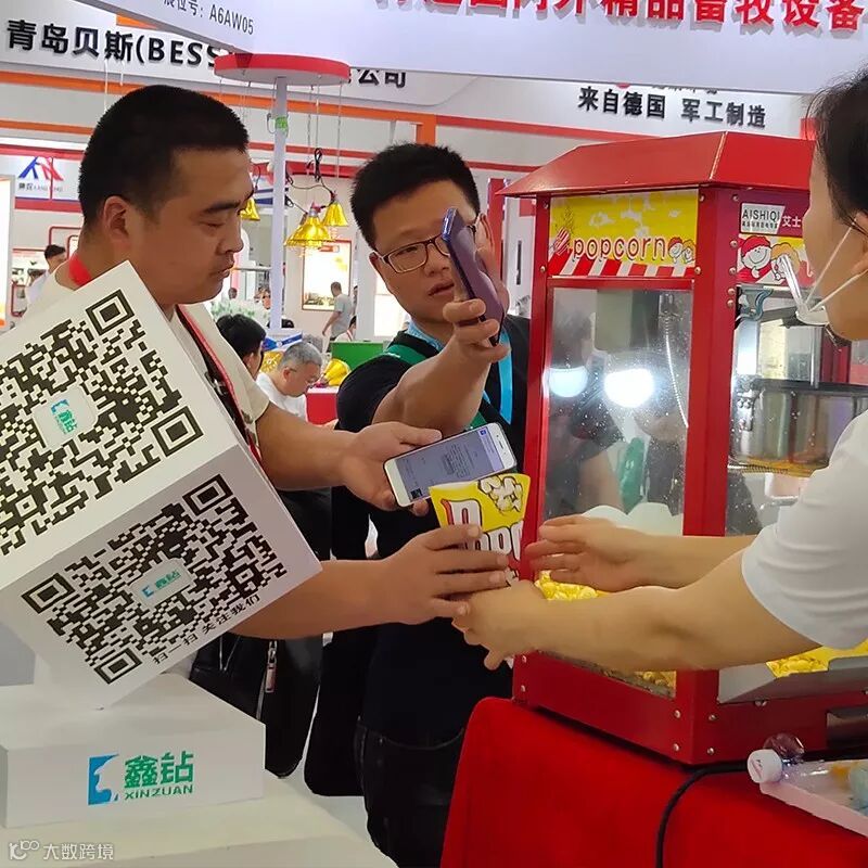 现场扫码免费领取爆米花活动,在人山人海的展会中,闻着味儿都能找到鑫钻。