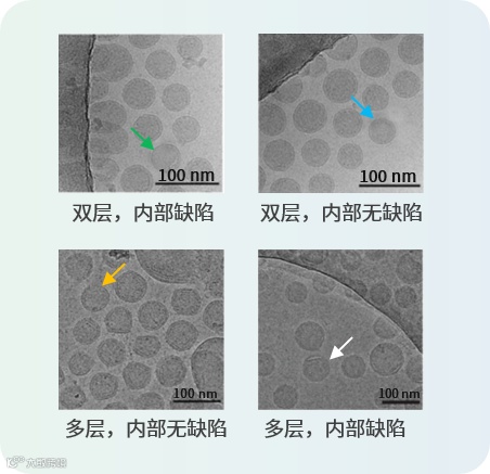 LNP的质量(如其包封率、载药量与稳定性)很大程度上取决于其囊泡的结构是否均匀、稳定。冷冻电镜是唯一一种可以观察LNPs内部密度的技术,可以检测包封率或颗粒填充/空比。