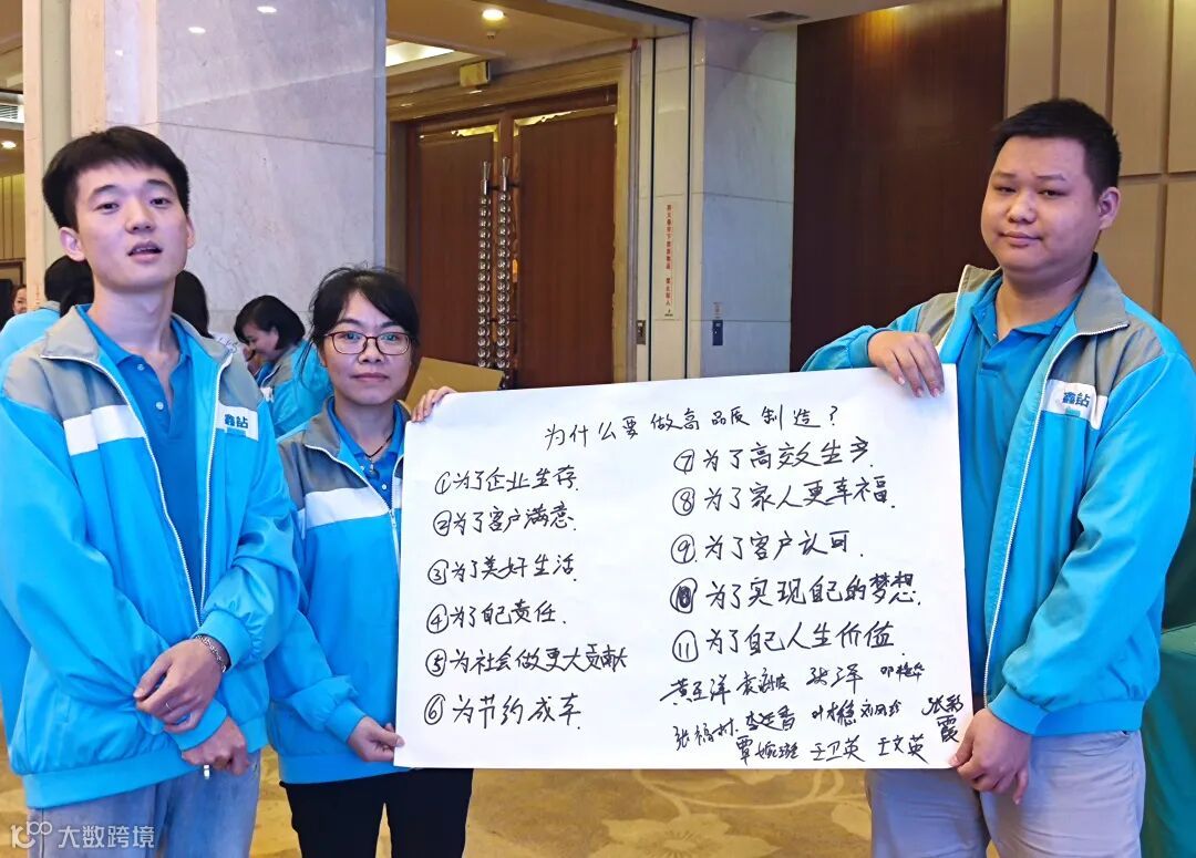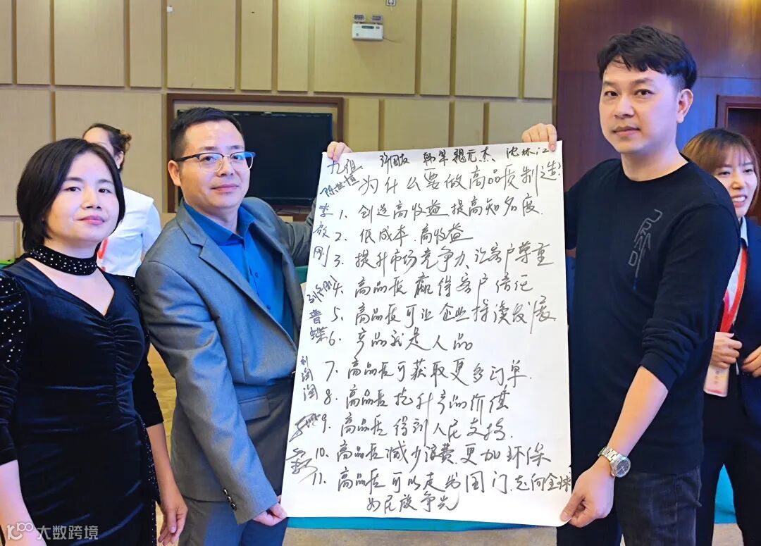 大家通过老师的演讲,研讨会的学习,所有人都发挥自己的思考,把为什么要做高品质制造,都一一写了出来,并上台分享。