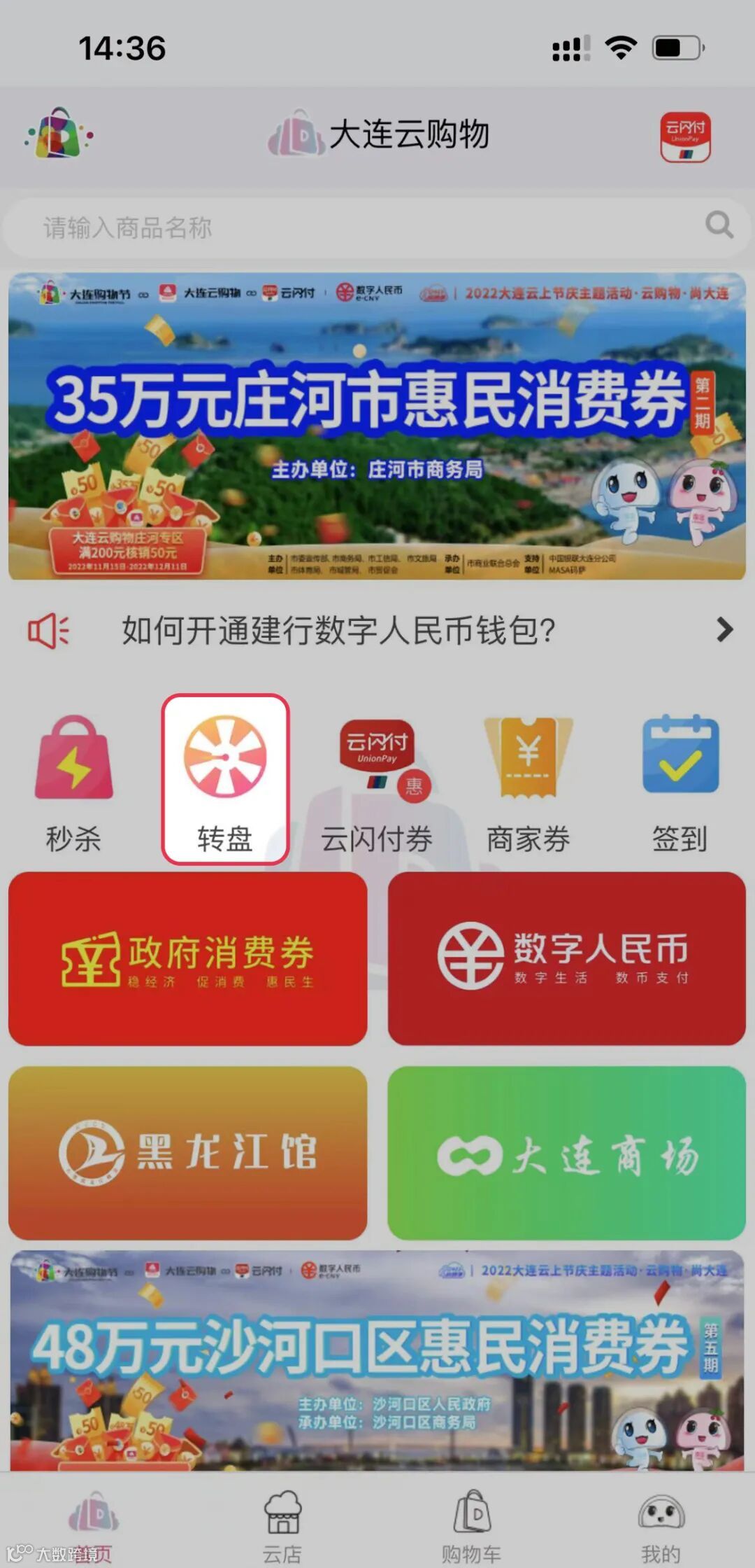 大连云购物数字人民币专区优惠券