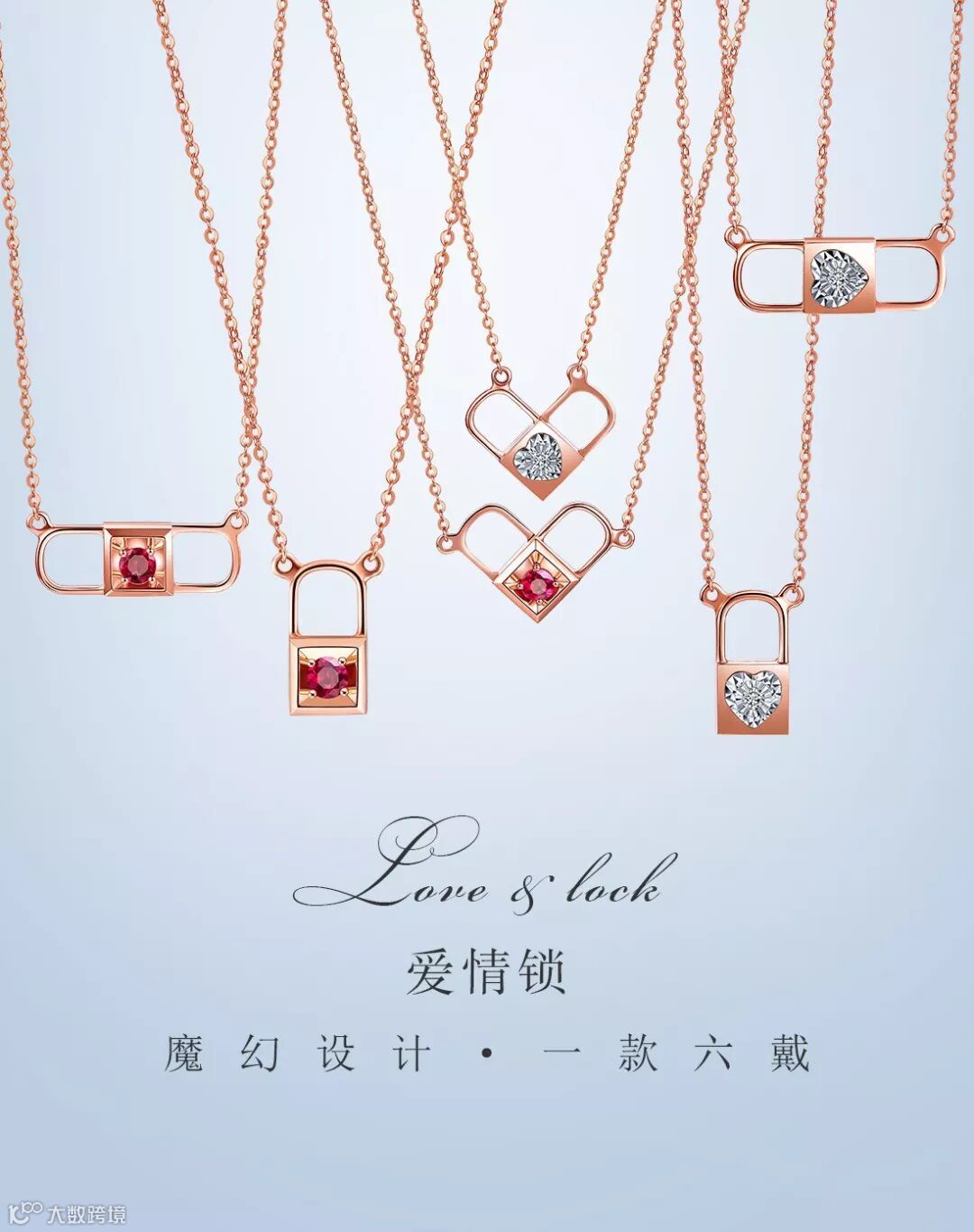 喜钻 新品一款六戴爱情锁18K金钻石吊坠