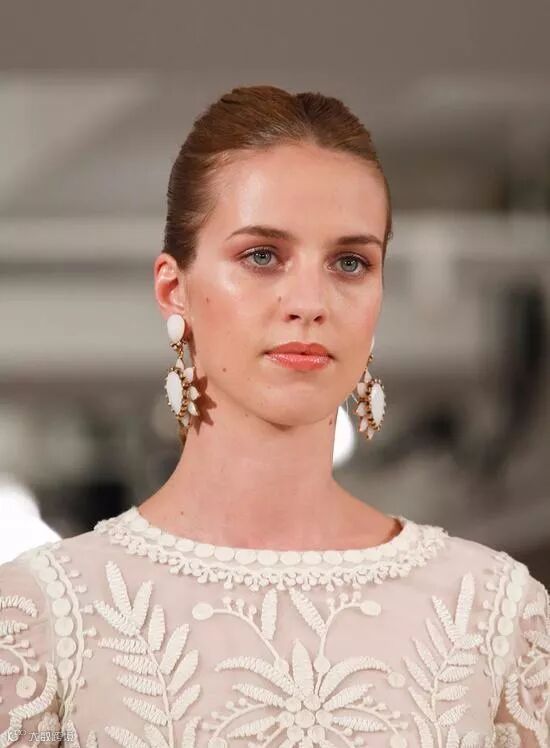 出自极致工艺的刺绣礼服,搭配晶莹剔透的大号花朵耳环,简直是锦上添花,高贵的气质油然而生。