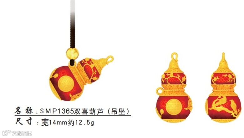 足金双喜葫芦吊坠珐琅