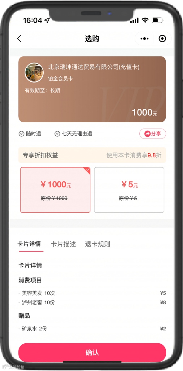 ①支持多卡片灵活配置,满足商户个性化营销需求,商户可通过商家后台对店铺内充值卡和时效卡进行折扣设置以及赠品权益等,开启权益功能。